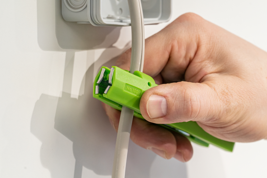 지속 가능한 피복제거 공구 I 케이블 피복제거용 범용 공구 I 벽 및 천장의 플러시 피복제거 I 원형 및 세로 절단 I 작업 범위 0.5 - 16 mm² / 4 - 13 mm Ø I 주택 설치의 다양한 케이블 유형에 적합합니다.