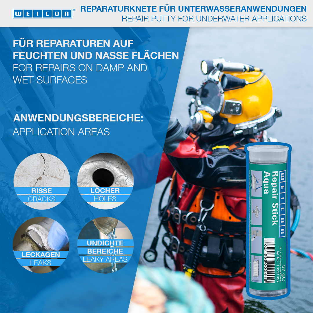 축축하고 젖은 표면의 빠른 수리 및 수중 작업에 이상적입니다. 휘발유 및 물 탱크, 라디에이터, 전기 배전반, 위생 설비 및 수영장의 균열, 구멍 및 누수를 수리하고 밀봉하는 데 사용됩니다. 본 제품은 위생 및 난방 시스템 건설, 전기 장비, 해양 부문 및 기타 여러 산업 분야에서 사용할 수 있습니다.