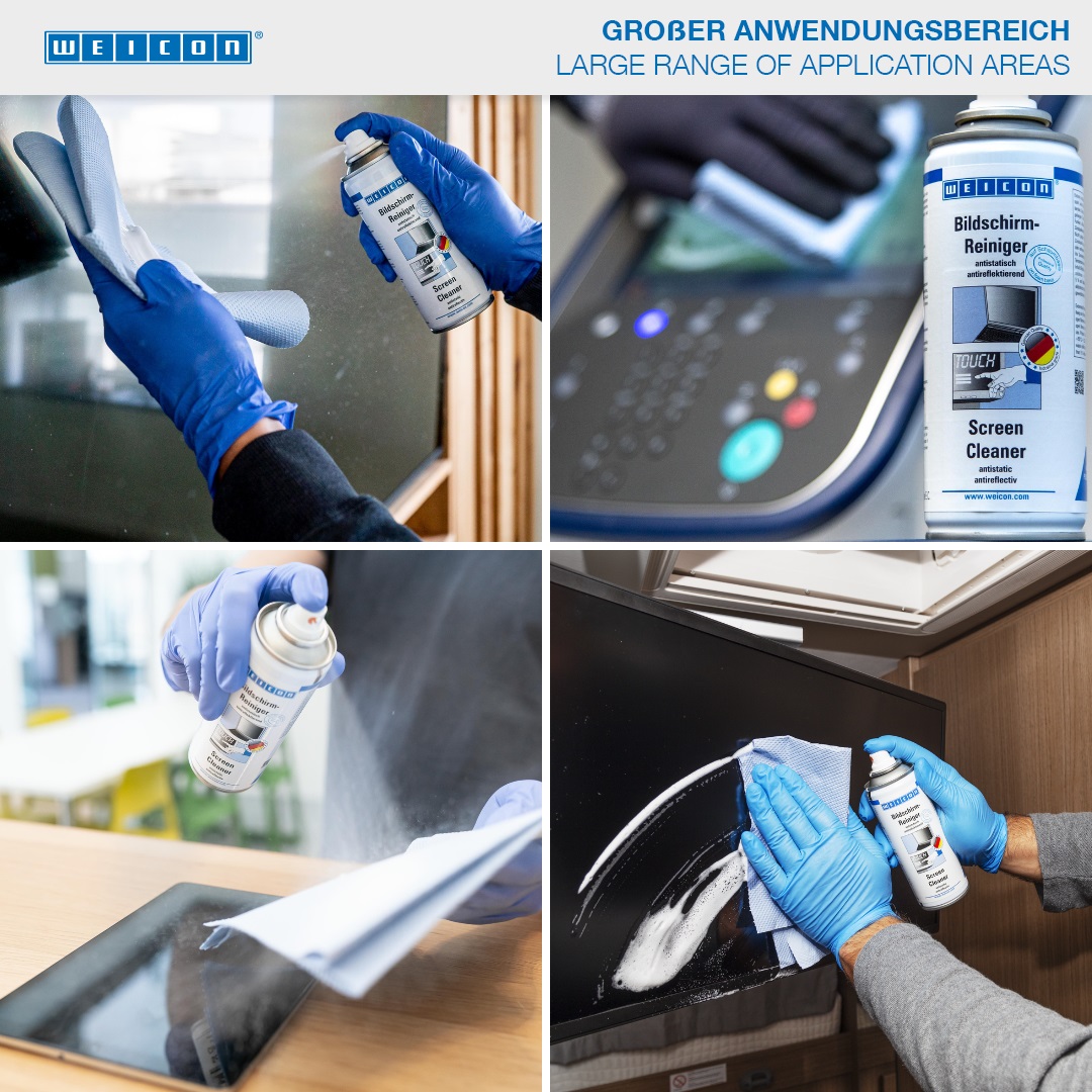 웨이콘 스크린 클리너는 민감한 플라스틱 및 유리 표면을 청소하고 관리하기 위한 특수 클리너입니다. 정전기 방지 및 반사 방지 기능이 있습니다. 정전기 방지 효과로 먼지와 먼지를 차단하는 표면을 제공합니다. WEICON 스크린 클리너는 벌레, 먼지, 오물, 기름, 니코틴으로 인한 오염을 줄무늬를 남기지 않고 부드럽게 제거합니다. WEICON 스크린 클리너는 모든 평면 및 플라즈마 스크린(컴퓨터, 휴대폰, 노트북 컴퓨터, 텔레비전, 스캐너, 복사기 등)과 플라스틱 하우징(컴퓨터, 스캐너, 복사기, 텔레비전 등)에 사용할 수 있습니다.