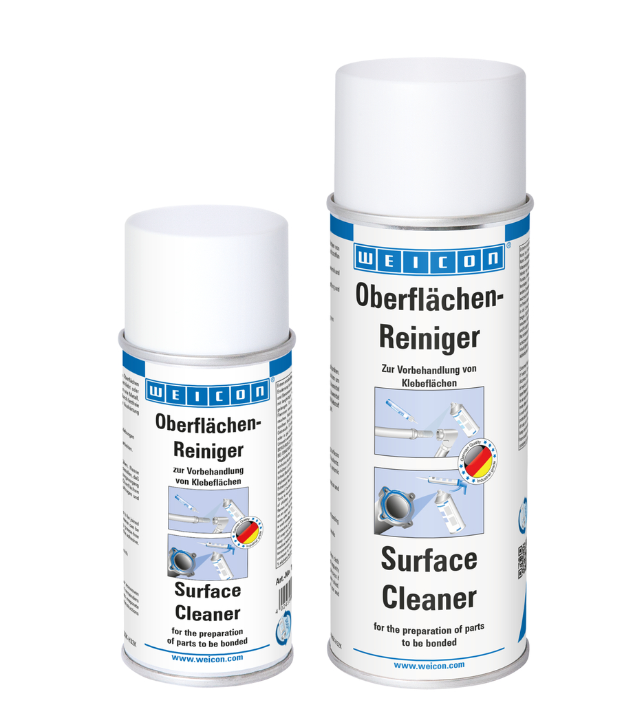 웨이콘 서피스 클리너는 웨이콘 접착제 및 실란트로 접착 또는 밀봉할 표면의 세척 및 탈지 작업에 사용됩니다. 표면 클리너는 금속, 유리, 세라믹 및 대부분의 플라스틱과 같은 소재에 사용할 수 있으며 잔류물 없이 증발합니다. 사용하기 전에 표면 호환성을 확인하세요. 웨이콘 표면 클리너는 유지보수 작업 과정에서 기계 부품을 세척하고 탈지하는 데에도 사용할 수 있습니다.
