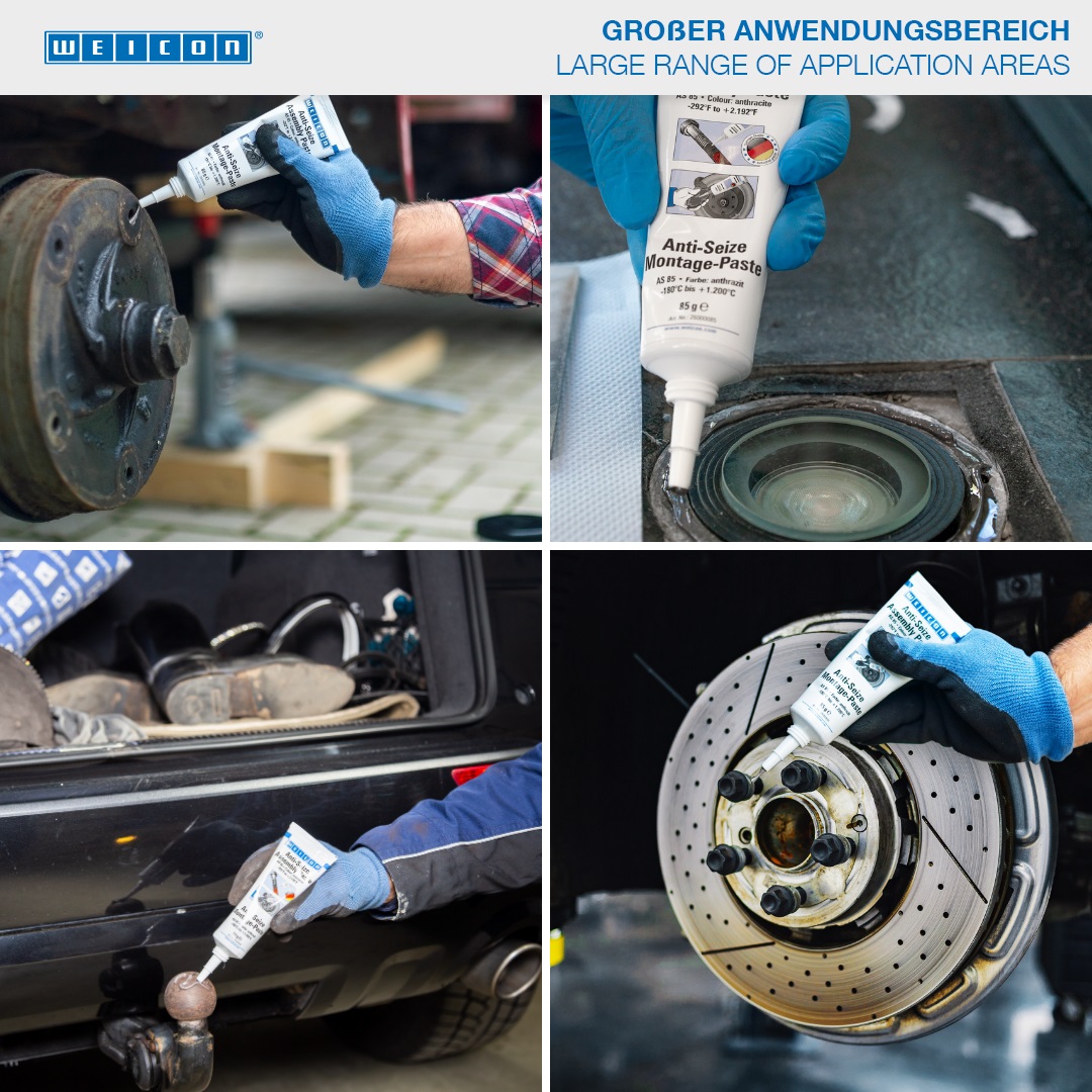 WEICON 고착 방지제는 고온에 강하고 분리 특성이 뛰어납니다. 고착 방지제는 응력이 높은 부품의 보호, 재이형 및 윤활제로 사용됩니다. 이상적으로 호환되는 고체 내용물과 엄선된 첨가제를 통해 다양한 용도로 사용할 수 있습니다; WEICON Anti-Seize는 부식, 고착 및 마모, 스틱-슬립 현상, 산화, 프레팅 부식 및 전해 반응("냉간 용접")으로부터 보호합니다.