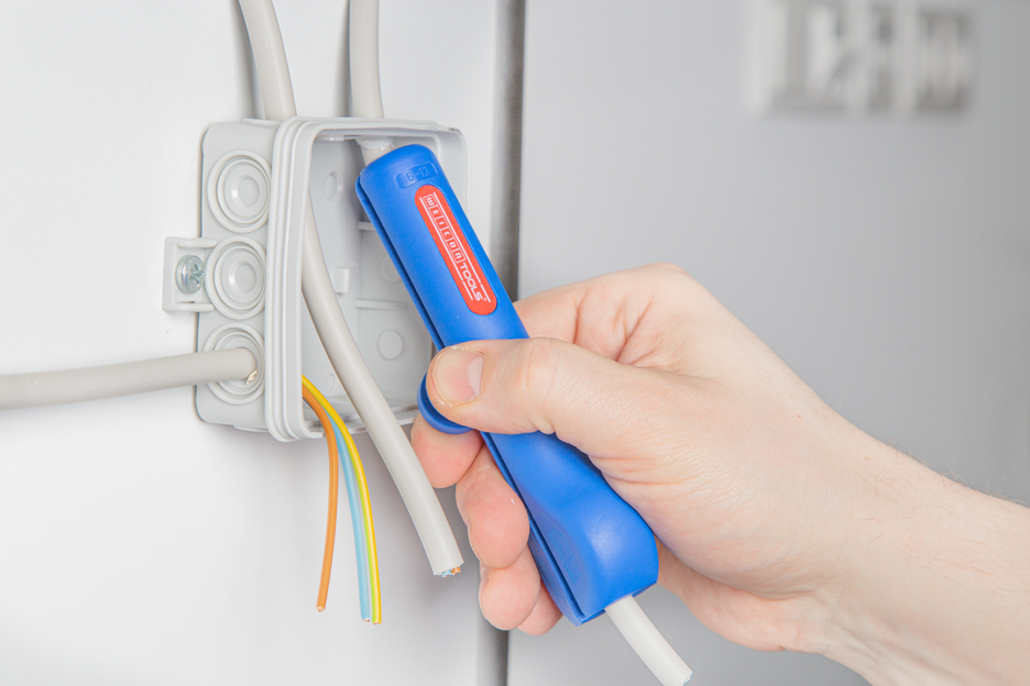 원형 케이블 피복제거기 13번을 사용하면 직경 6.0~13.0mm의 모든 일반 원형 및 습식 룸 케이블(예: NYM 케이블 3 x 1.5mm² ~ 5 x 2.5mm²)을 빠르고 편리하게 피복제거할 수 있습니다. 절단 깊이를 수동으로 조정할 필요가 없습니다. 따라서 새로운 작업 범위는 6mm의 작은 와이어 직경(예: 3 x 0.75mm²)에도 적합합니다. 인체공학적 핸들 모양 덕분에 이 공구는 특히 편안하게 사용할 수 있습니다. 원형 케이블 피복제거기 13번의 독특한 손잡이는 미끄러지지 않는 안전한 그립감을 보장합니다. 따라서 일상적인 작업이 더 쉬워지고 작업 안전도 향상됩니다. 둥근 공간 절약형 공구 헤드는 현대적인 월 박스 구조와 완벽하게 어울립니다. 길이가 길어져 깊숙이 설치된 벽면 박스나 접근하기 어려운 공간에서 스트리핑할 때 더욱 쉽게 접근할 수 있습니다. 새로운 칼날 배열로 인해 케이블 피복 잔여물로 인한 전기 아연 도금 칼날의 막힘을 방지합니다. 소형 시리즈 또는 동일한 길이의 전선을 생산할 수 있도록 하우징에 길이 스톱이 통합되어 있습니다. 고정 클립으로 공구를 안전하게 보관할 수 있습니다.