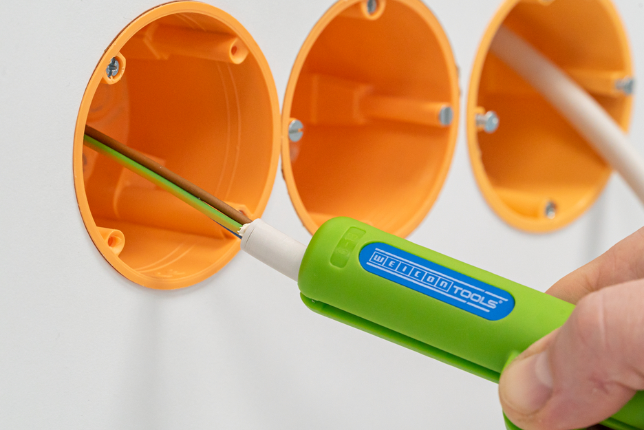 지속 가능한 피복제거 공구 I 인체공학적 핸들 모양으로 미끄럼 방지 및 안전한 작업 가능 I 모든 일반 원형 케이블 피복용 I 작업 범위 6,0 - 13.0 mm Ø I 절단 깊이 조정 필요 없음