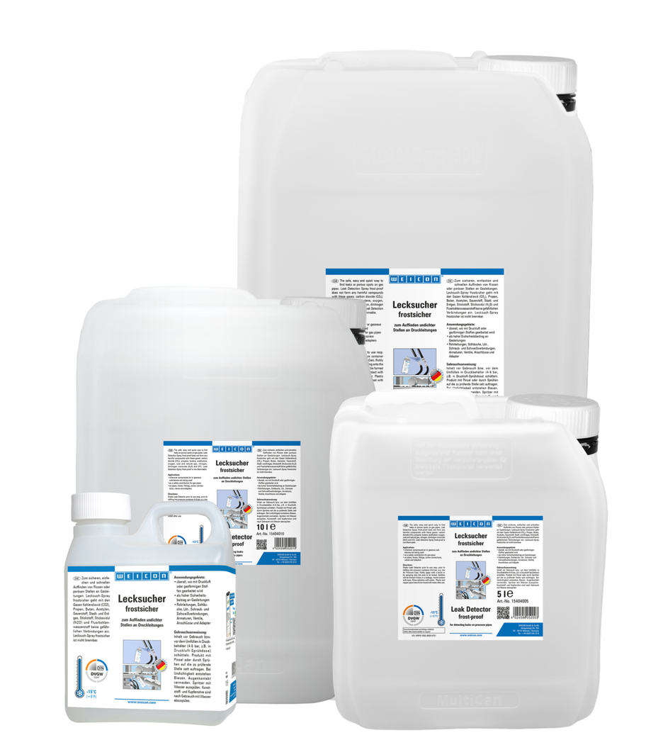 DVGW 승인 | DIN EN 14291에 따른 거품 형성 누출 감지기 | 불연성 | 비부식성 | 최대 -15˚C(+ 5 °F)의 방한 기능