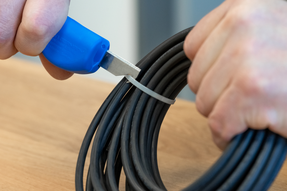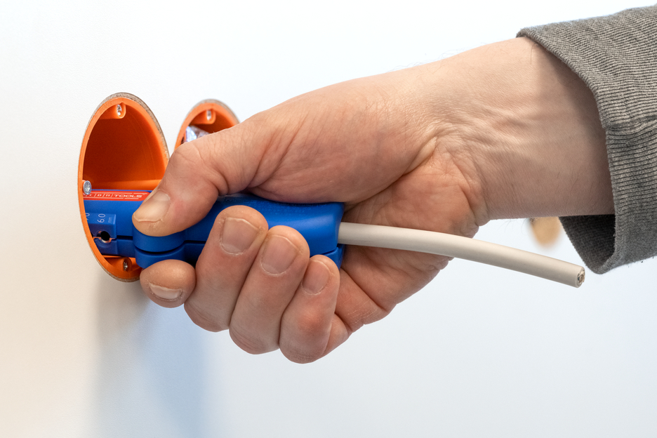 케이블 라우팅에 최적화된 다기능 I 원형 절단 - 세로 절단 - 피복 벗기기 - 절단 I 손이 닿기 어려운 위치에서도 플러시 피복 벗기기 I 작업 범위 0.5 - 6mm² / 8 - 13mm Ø I 교체 가능한 후크 블레이드, 어떤 위치에서도 단단히 고정됨