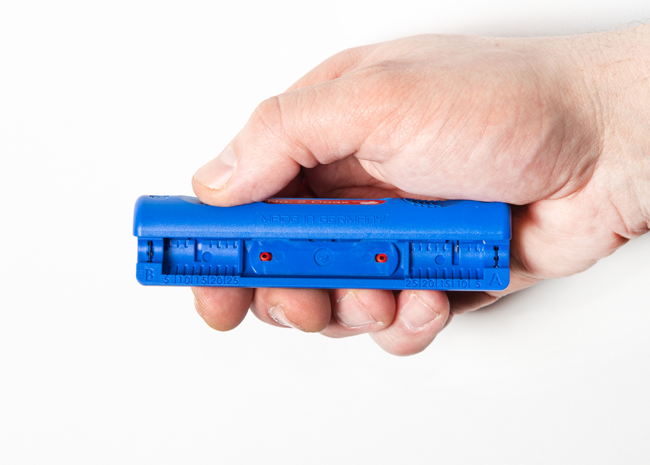 인체공학적 디자인으로 취급이 간편함 I 하우징에 길이 눈금(0 - 25 mm)이 통합됨 I 절단 깊이 조절 불필요 I 모든 일반 동축 케이블의 2단계 피복 제거 I 작업 범위 4.8 - 7.5 mm Ø I 유연한 케이블에도 적합함