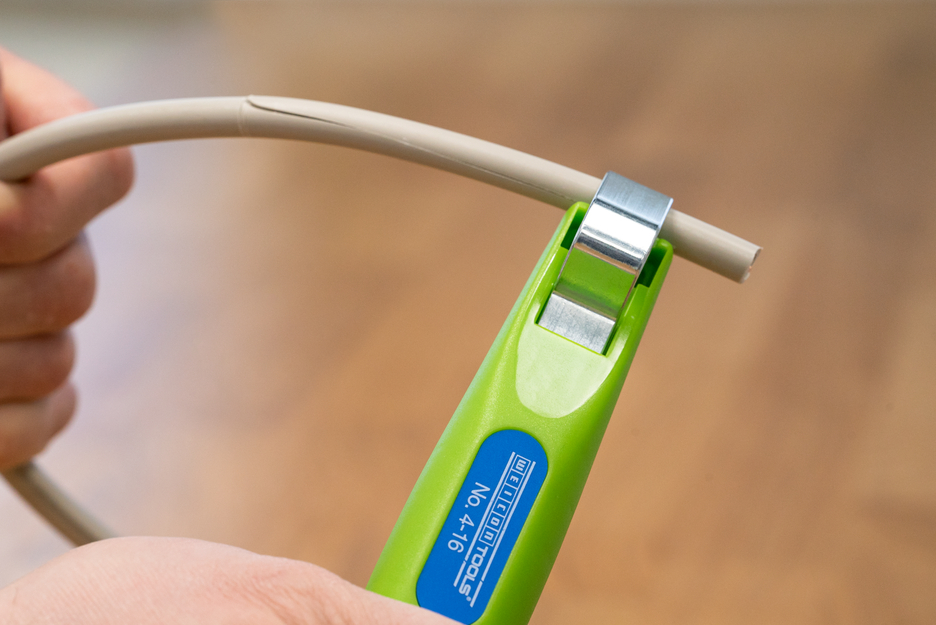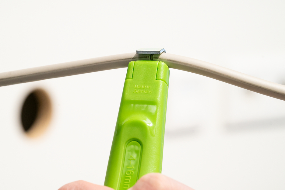 지속 가능한 스트리핑 도구 I 무한 가변 및 조작이 쉬운 조정 휠 자동 회전 I 내부 블레이드 회전 I 정확하고 빠르고 안전한 스트리핑 I 작업 범위 4 - 16 mm Ø