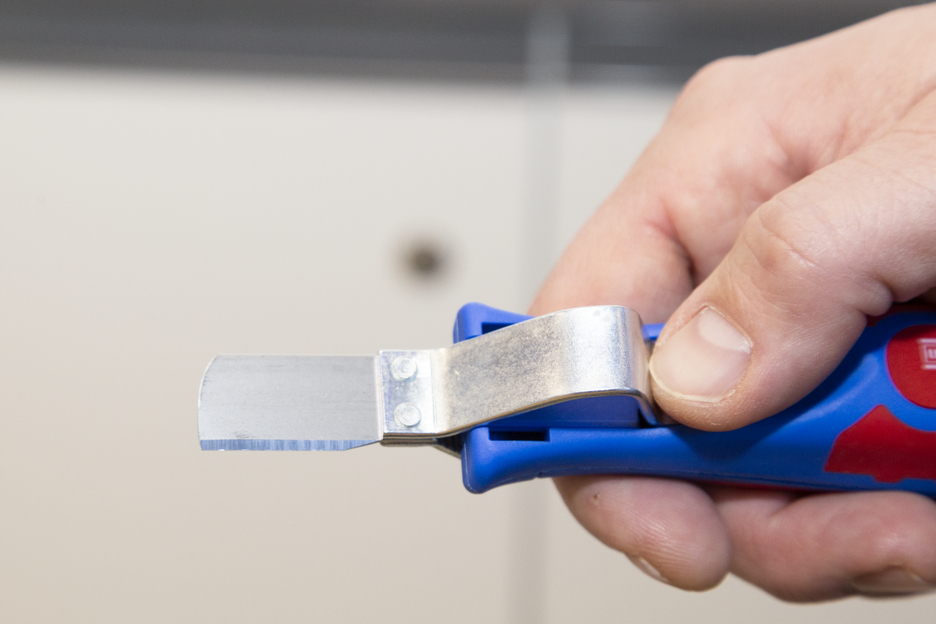 케이블 스트립퍼 4-28 G를 사용하면 직경 4~28mm의 모든 일반 원형 케이블을 정확하고 빠르고 안전하게 피복제거할 수 있습니다. 본 제품에는 인체공학적 형태의 미끄럼 방지 멀티 컴포넌트 손잡이가 있습니다. 손잡이 뒷면에 있는 고정 나사를 이용해 절단 깊이를 무한대로 조절할 수 있습니다. 따라서 내부 도체의 손상을 방지할 수 있습니다. 커팅날이 하우징에 통합되어 있고 자동 회전하므로 원형 절단에서 세로 절단까지 자동으로 조정할 수 있습니다. 또한 4-28 G에는 안전 캡으로 덮을 수 있는 후크 블레이드가 있습니다.