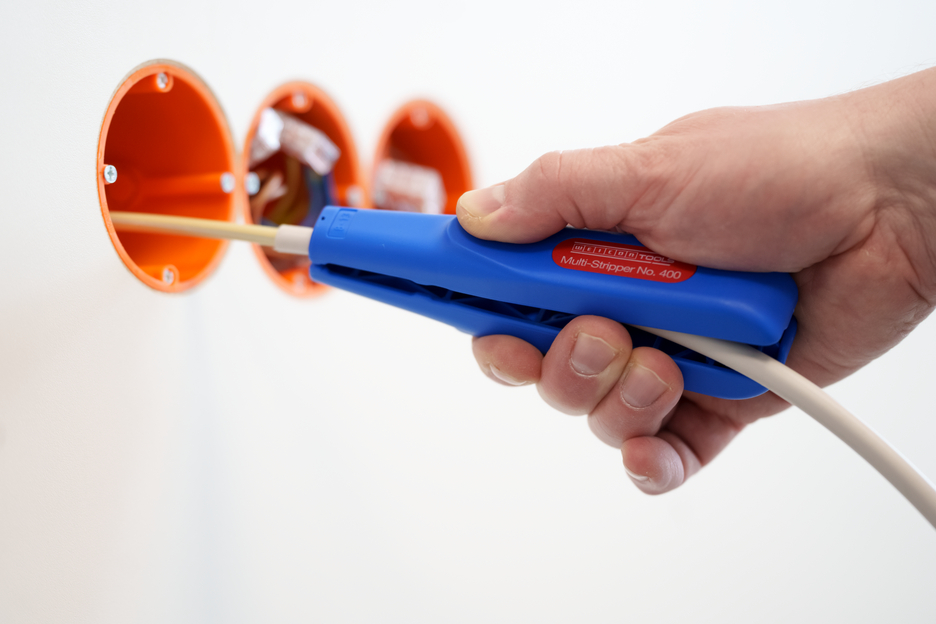 WEICON 멀티 스트리퍼 400번은 원형 절단-종단 절단-피복 벗기기-절단 기능을 갖춘 다용도 피복제거 공구입니다. 이 도구를 사용하면 천장과 벽, 배전함, 스위치 캐비닛 등 접근하기 어려운 곳에서도 케이블을 쉽게 피복 벗길 수 있습니다. 컨투어 블레이드를 사용하여 0.5mm², 0.75mm², 1.5mm², 2.5mm², 4.0mm² 및 6.0mm²의 도체 단면을 피복 벗길 수 있습니다; 멀티 스트리퍼는 편리한 디자인과 다양한 용도가 인상적입니다.