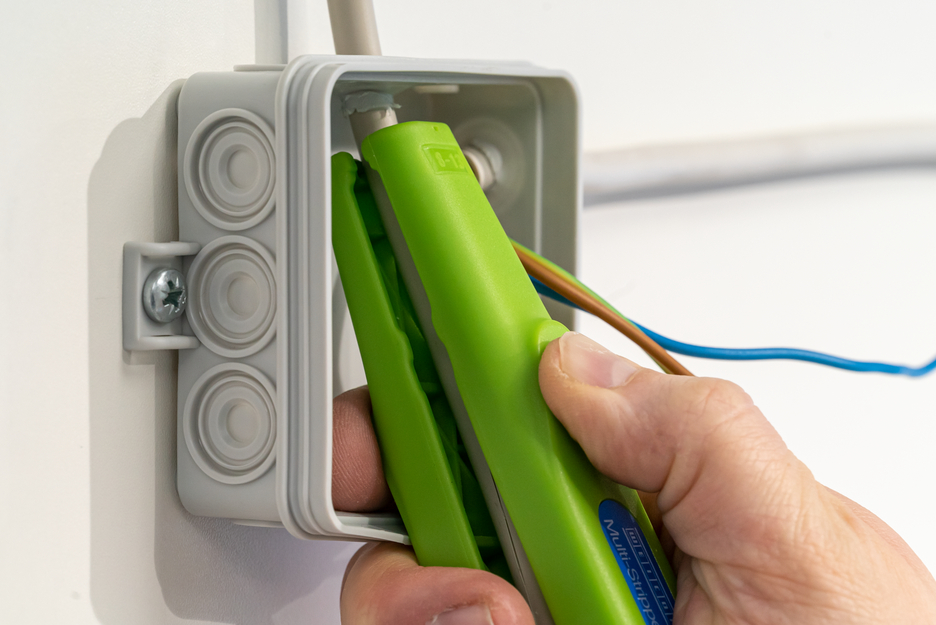 그린 라인을 통해 매우 특별한 공구 제품군이 개발되었습니다. 이 공구는 최대 97%의 재생 가능한 원료로 만들어져 재활용이 가능하고 수명 주기 평가가 우수합니다. WEICON 멀티 스트리퍼 400 그린 라인은 원형 절단-종단 절단-피복 벗기기-절단 기능을 위한 범용 피복제거 공구입니다. 이 도구를 사용하면 천장과 벽, 배전함, 스위치 캐비닛 등 접근하기 어려운 곳에서도 케이블을 쉽게 피복 벗길 수 있습니다. 컨투어 블레이드를 사용하여 0.5mm², 0.75mm², 1.5mm², 2.5mm², 4.0mm² 및 6.0mm²의 도체 단면을 피복 벗길 수 있습니다. 멀티 스트리퍼는 편리한 디자인과 다양한 용도가 인상적인 제품입니다.
