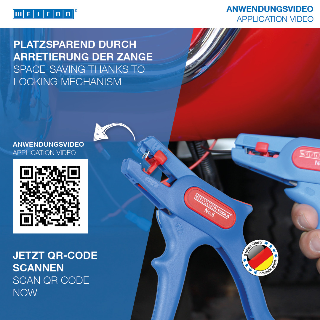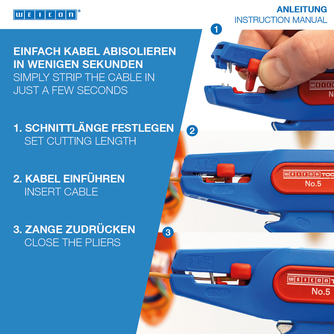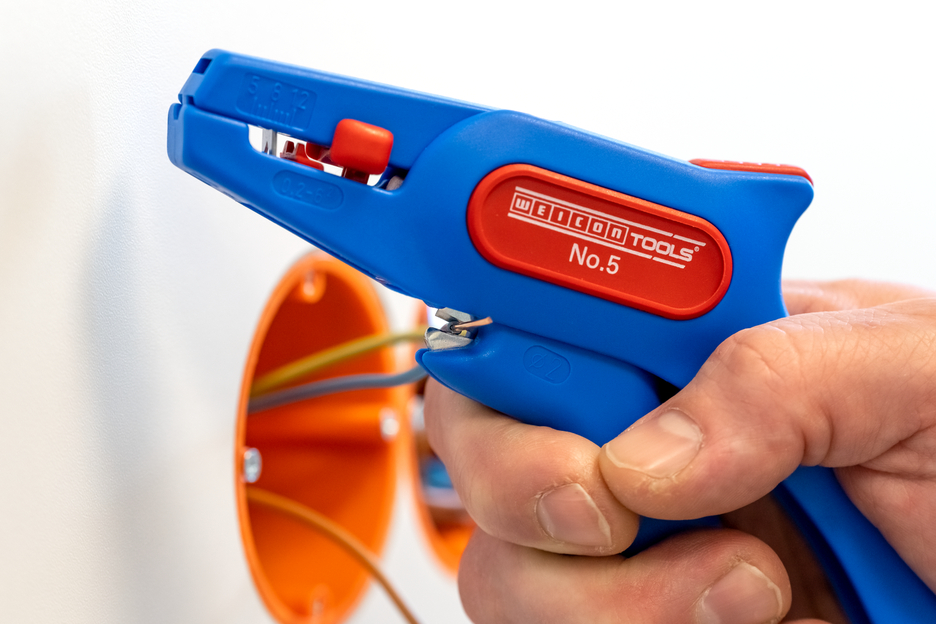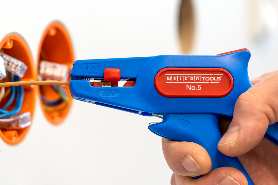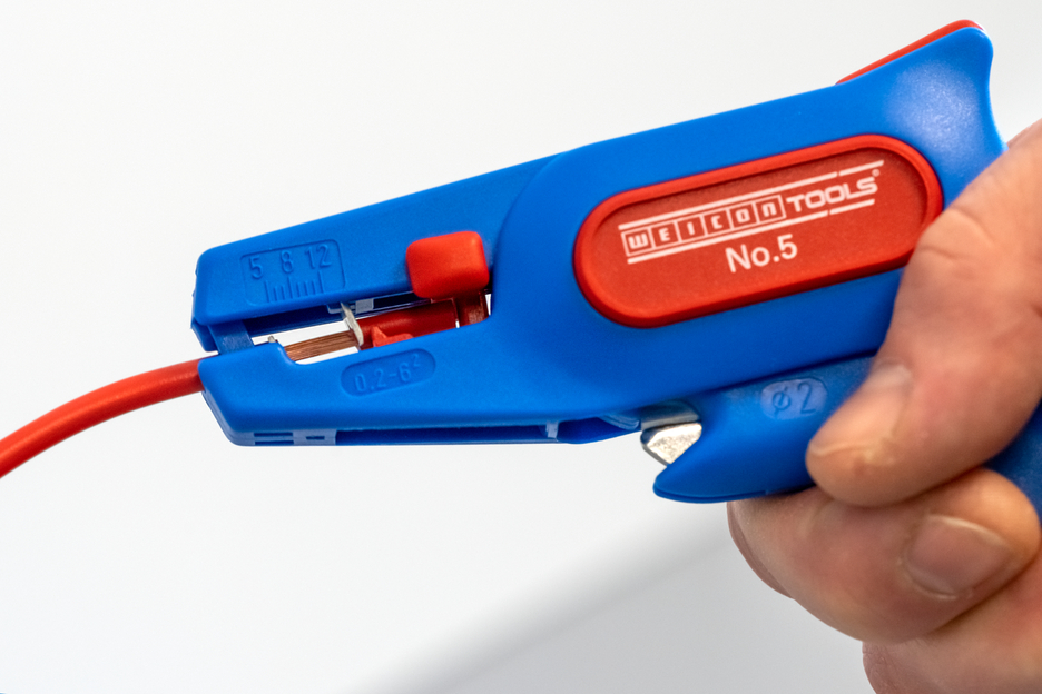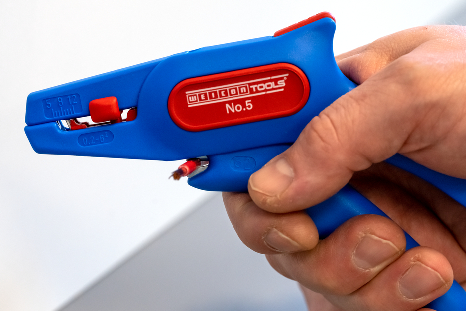 모든 일반 연선 및 단선용 자동 와이어 스트리퍼 (0.2 - 6.0 mm²), 작동이 매우 쉬움, 길이 스톱(5 - 12 mm) 조절이 가능하여 정밀한 작업 가능