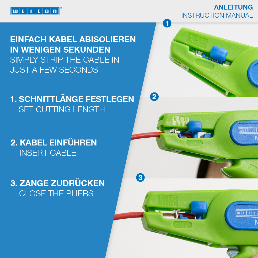 모든 일반 연선 및 단선 도체를 위한 지속 가능한 피복제거 공구 I, 작업 범위 0,2 - 6,0 mm²