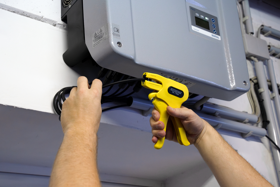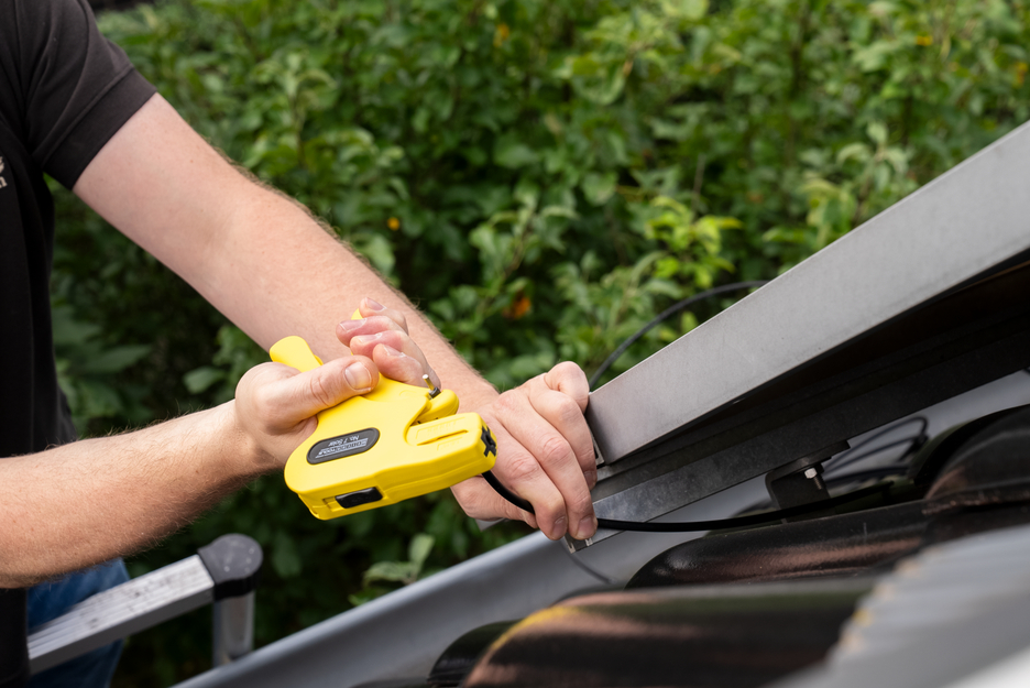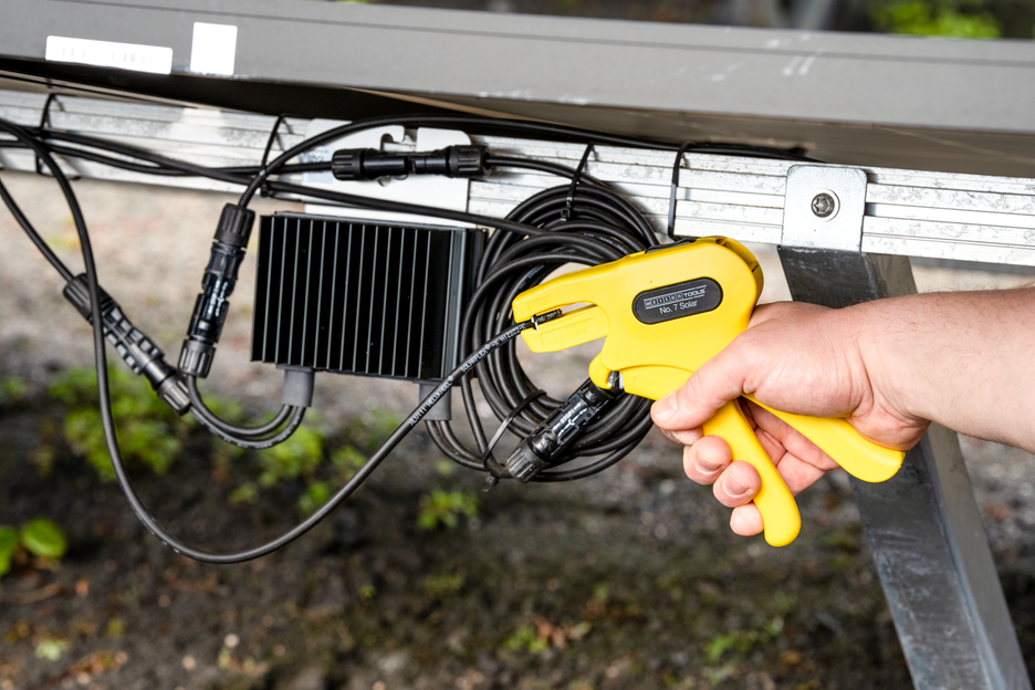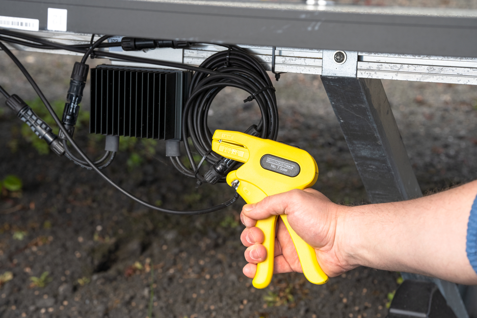태양광 분야의 모든 일반 케이블을 피복하는 특수 공구 I 광학 선형 측정으로 정밀한 작업 가능(최대 24 mm) I 자동 전선 피복제거기 I 최대 3 mm Ø의 접근하기 쉬운 통합형 측면 절단기 I 작업 범위 1.5 - 10 mm²