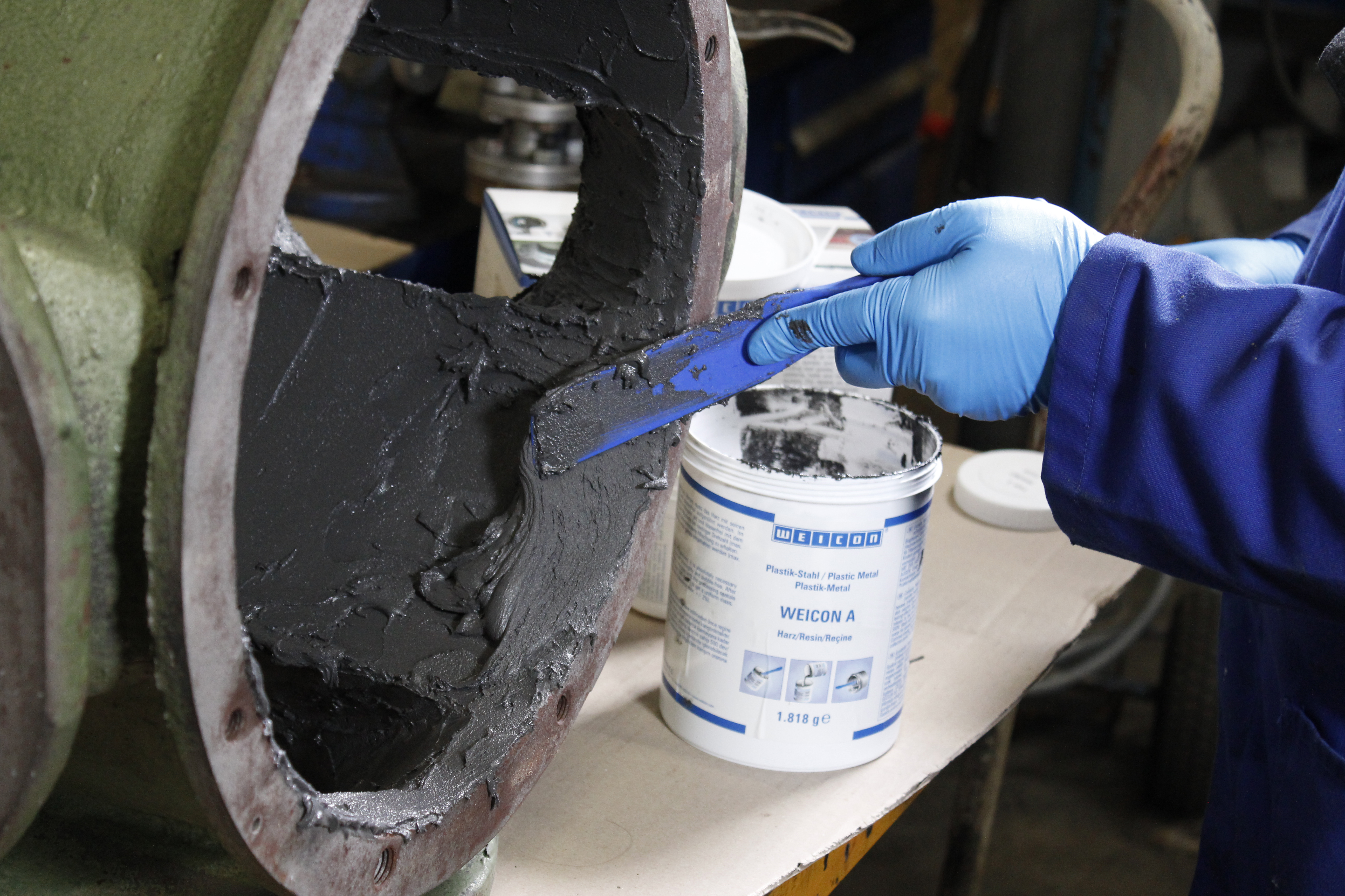 WEICON A는 DNV 인증을 받았으며, 특히 해양 산업의 수리 및 유지보수 작업에 적합합니다. 본 제품은 강철 안료가 고도로 충전되어 있고 자성을 띠며 페이스트 질감으로 수직 표면에도 도포할 수 있습니다. 부식 손상과 구멍을 제거하거나 구멍과 블로우홀을 수리하는데 사용할 수 있습니다. 예를 들어, 부식과 구멍으로 인해 심각한 손상을 입은 무거운 강철 부품을 재현하는데 사용할 수 있습니다. 이 경우 에폭시 수지를 도포해도 용접과 같은 열 변형이 발생하지 않기 때문에 WEICON A는 용접의 진정한 대안이 될 수 있습니다. 2액형 제품으로 탱크와 파이프의 수리뿐만 아니라 엔진이나 펌프 하우징 및 기계 부품의 균열을 수리하는 데에도 사용할 수 있습니다. 파이프와 파이프라인이 강한 매체의 영향에 노출되는 하수도 시스템에서 사용하기에 이상적입니다. 기타 응용 분야로는 모델, 금형, 공구 및 클램핑 장치 제조 등이 있습니다. 기계 공학, 공구 제작, 시멘트 산업, 발전소, 모형 및 금형 제작 및 기타 여러 산업 분야에서 WEICON A를 사용할 수 있습니다.