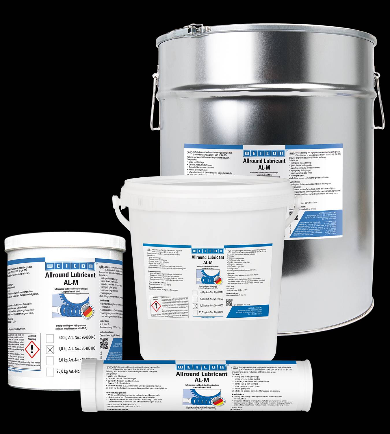 WEICON AL-M은 마찰과 마모를 영구적으로 줄여주며 롤러 및 슬라이드 베어링, 조인트, 레버, 슬라이딩 가이드, 스핀들, 캠샤프트, 스플라인 샤프트, 스프링, 오픈 기어 및 웜 기어에 적합하며 그리스 윤활이 허용되는 모든 미끄럼 속도에서 사용할 수 있습니다.