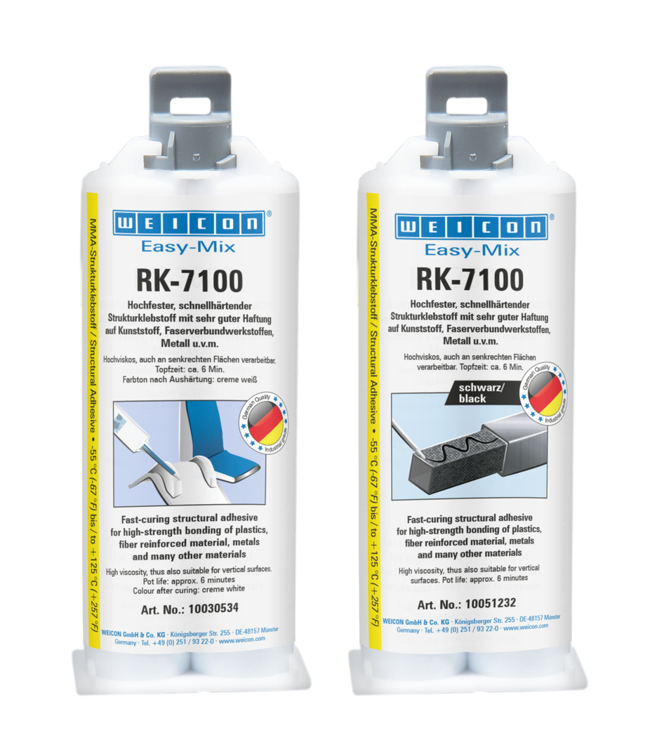 구조용 아크릴 접착제 WEICON Easy-Mix RK-7100은 인장, 전단 및 박리 강도가 높은 플라스틱, 금속 및 세라믹과 같은 다양한 재료를 접착하는 데 사용할 수 있습니다. 특히 고강도 연결이 필요한 구조용 접착에 적합합니다. 점성이 높기 때문에 수직 표면 가공에 적합합니다. RK-7100은 플라스틱 기술, 금속 건설, 차체 및 차량 건설, 기계 공학, 전기 공학, 모형 및 금형 제작, 무역 박람회 및 전시 건설 등에 광범위하게 사용할 수 있습니다.