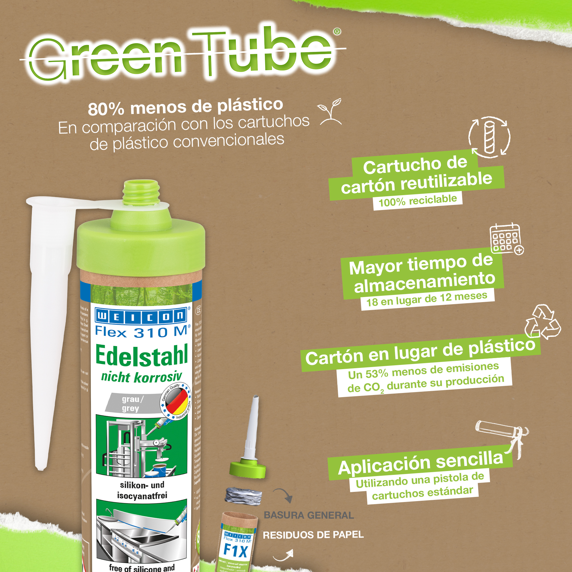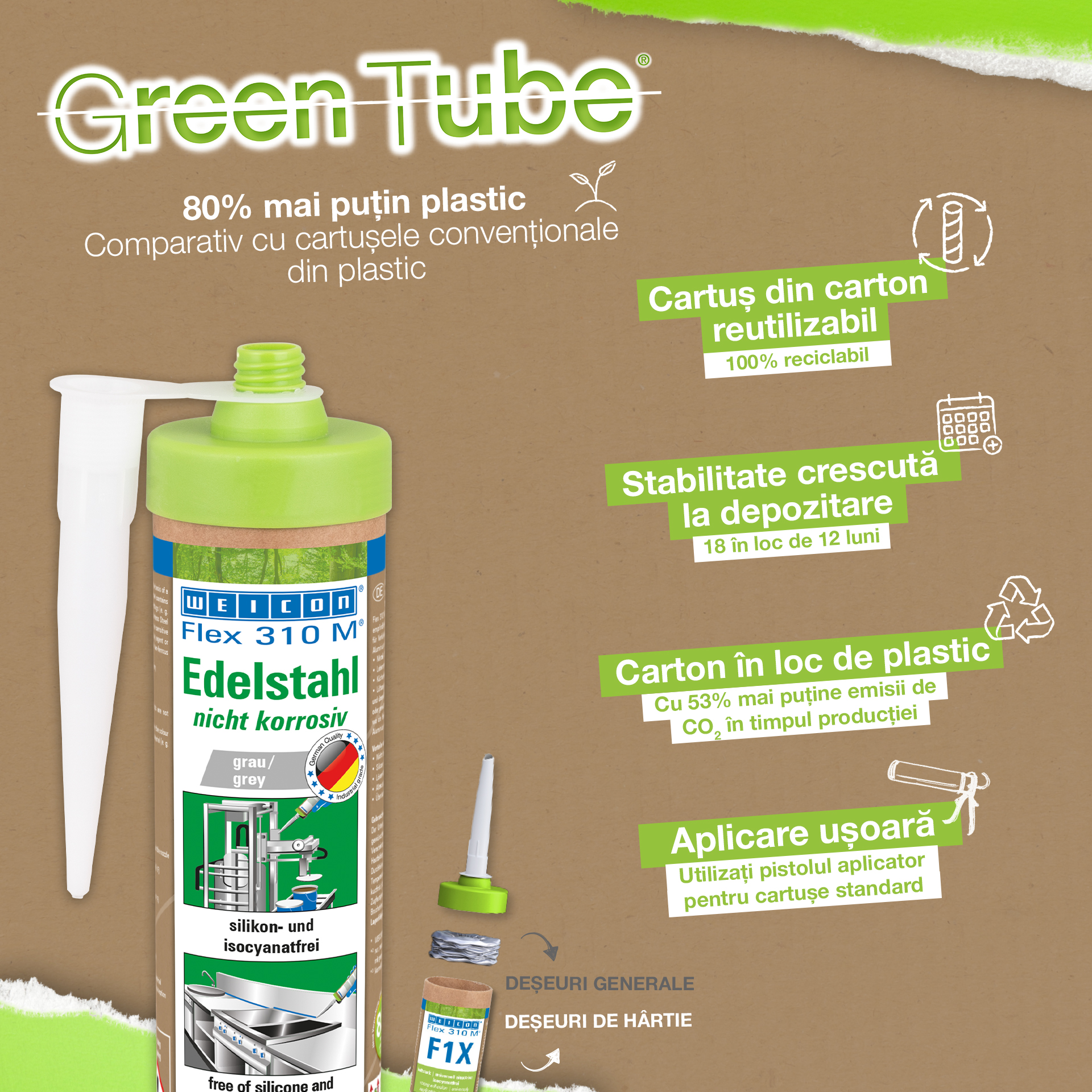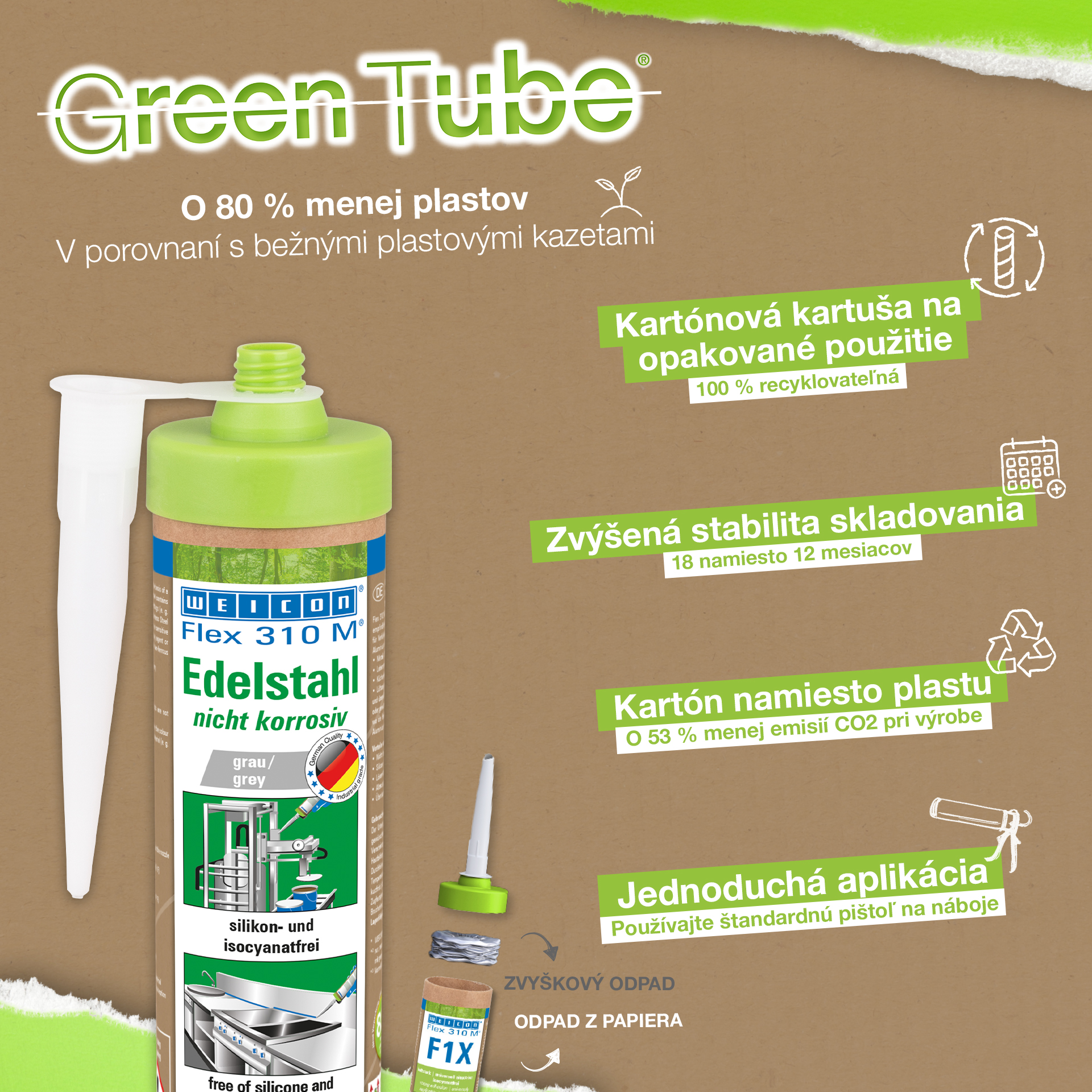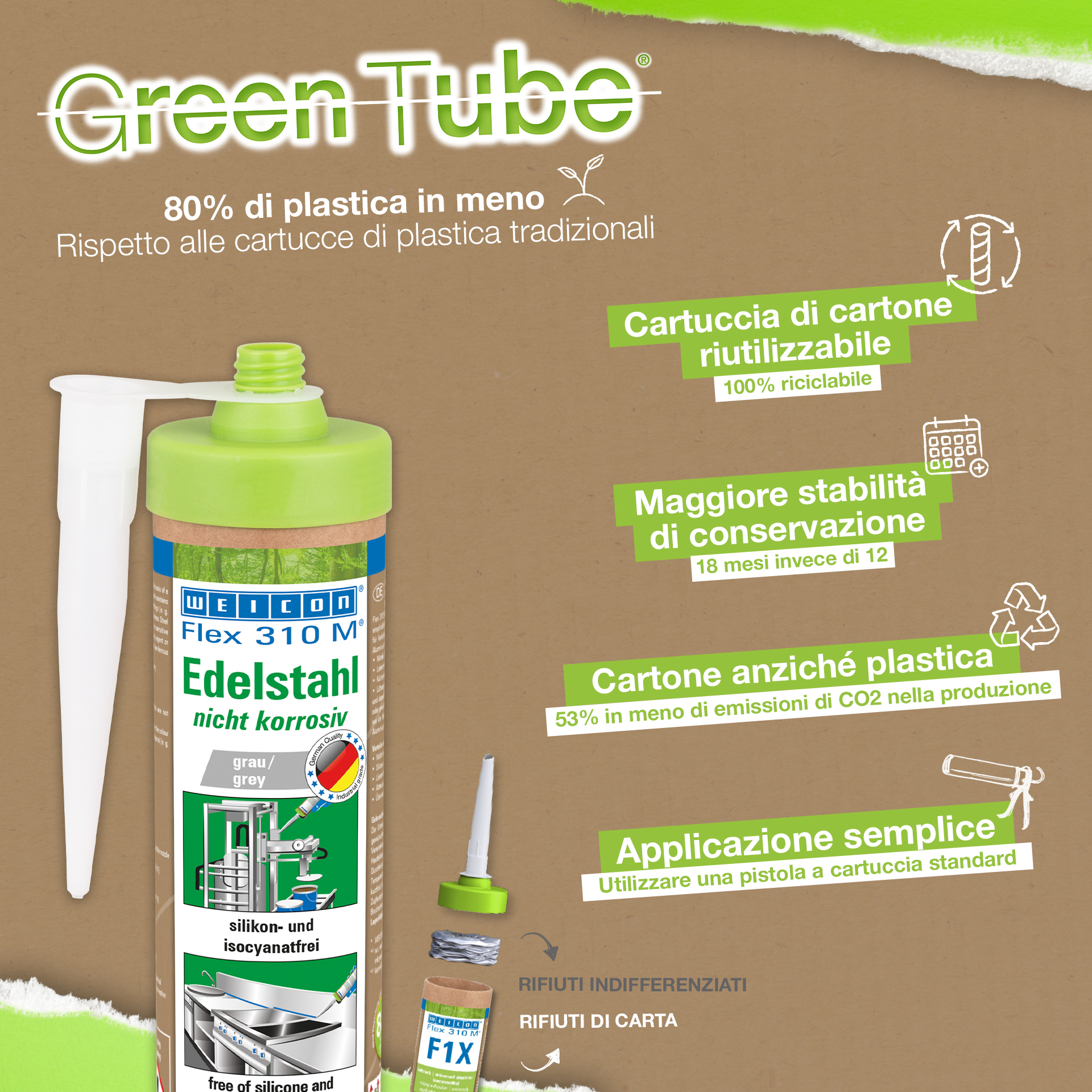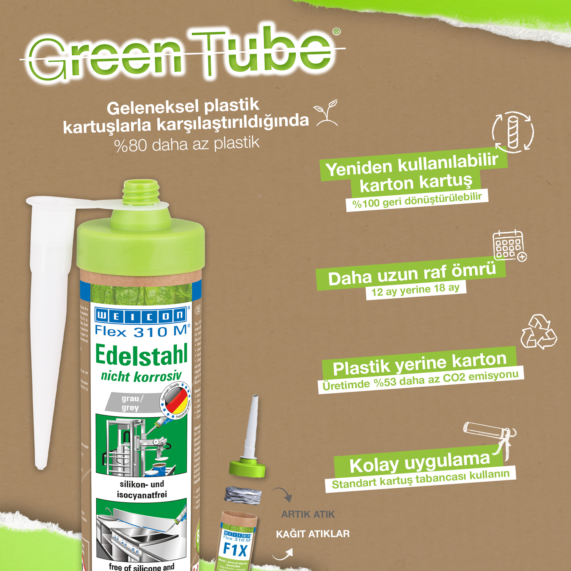 WEICON Flex 310 M 스테인리스 스틸 실란트는 비부식성, 강성, 도장 가능(습식), 샌딩 가능, 노화 및 자외선에 강하며 실리콘, 이소시아네이트, 할로겐 또는 용매가 함유되지 않은 제품입니다. 이 제품은 ISEGA 인증을 받았으며 식품 기술 분야에서 접착제로 사용할 수 있습니다. Flex 310 M 스테인리스 스틸은 MS 폴리머 기반의 탄성 접착제로 스테인리스 스틸, 알루미늄 및 비철금속과 같은 금속의 이음새 및 조인트 밀봉뿐만 아니라 접착에도 적합합니다. 또한 접착제와 실런트의 색상이 표면 소재(예: 스테인리스 스틸, 알루미늄 등)와 일치해야 하는 모든 적용 분야에 사용할 수 있습니다. WEICON Flex 310 M 스테인리스강은 금속 건축, 탱크 및 장치 엔지니어링, 식품 산업, 주방 및 위생 설비, 환기 및 공조 시스템, 실리콘 또는 실리콘 함유 제품이 적합하지 않은 모든 적용 분야에 사용할 수 있습니다.