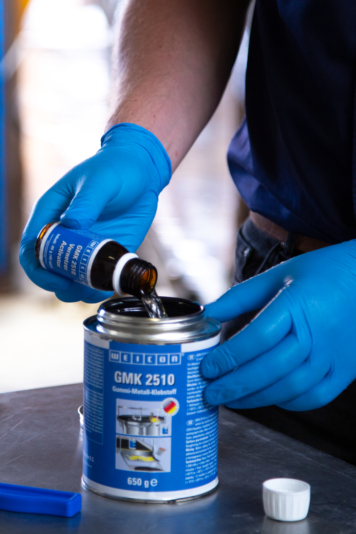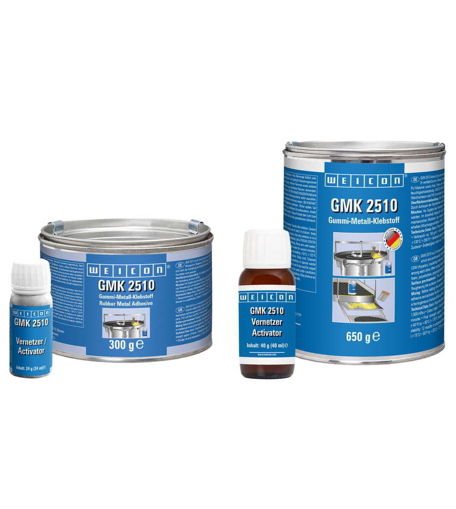 GMK 2510은 동적 하중에 지속적으로 노출되는 부품의 전체 표면 및 영구 탄성 접착을 위한 폴리클로로프렌 기반의 2액형 접착제입니다. 1액형 접촉 접착제에 비해 접착력이 크게 향상되고 온도 저항성이 높다는 장점이 있습니다. GMK 2510은 고무, 금속, 직물, 가죽, 스펀지 고무(네오프렌), CSM(하이팔론), 단열재, 접착 코팅이 된 PU 소재, 목재, 석재 및 다양한 플라스틱을 접착합니다. 경화 후 조인트는 습기에 강합니다. 폴리스티렌 폼, 폴리에틸렌, 폴리프로필렌 부품, PVC 소프트 폼 및 PVC 모조 가죽과 같은 소재에는 WEICON GMK 2510이 적합하지 않습니다.