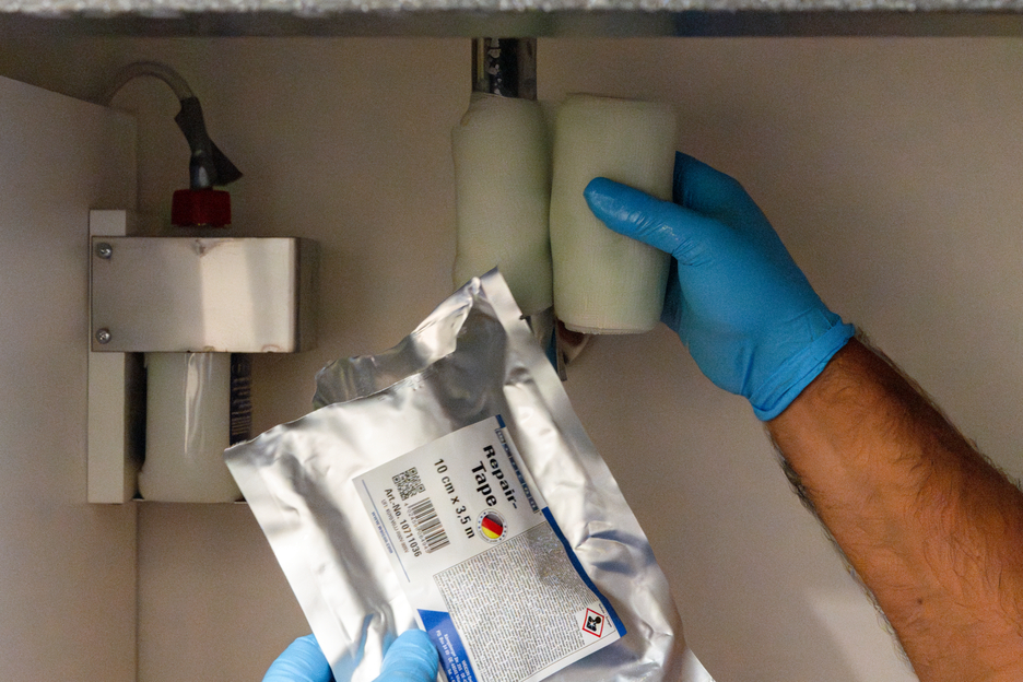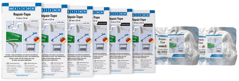 유리섬유 강화 플라스틱으로 만든 유연하고 내구성이 뛰어난 자가 접착식 수리 테이프로 실내 또는 실외에서 신속하게 긴급 수리를 할 수 있습니다; 테이프는 특수 수지에 적셔져 있으며 물과 접촉하면 활성화됩니다; 매우 쉽고 빠르게 부착할 수 있으며 거의 모든 표면에서 매우 높은 접착력을 보여줍니다. 30분만 지나면 테이프가 완전히 경화되어 내구성이 강해집니다. 경화 후에는 테이프를 샌딩하고 페인트칠할 수 있습니다. 50 °C에서 +150 °C까지 단기간 동안 높은 내화학성 및 온도 저항성을 가지고 있습니다. 이 테이프는 추가 도구 없이도 부착할 수 있으며 산업 분야, 숙련된 작업, 집 주변, 캠핑 및 DIY 부문에서 안정적이고 내구성 있는 수리에 사용됩니다.