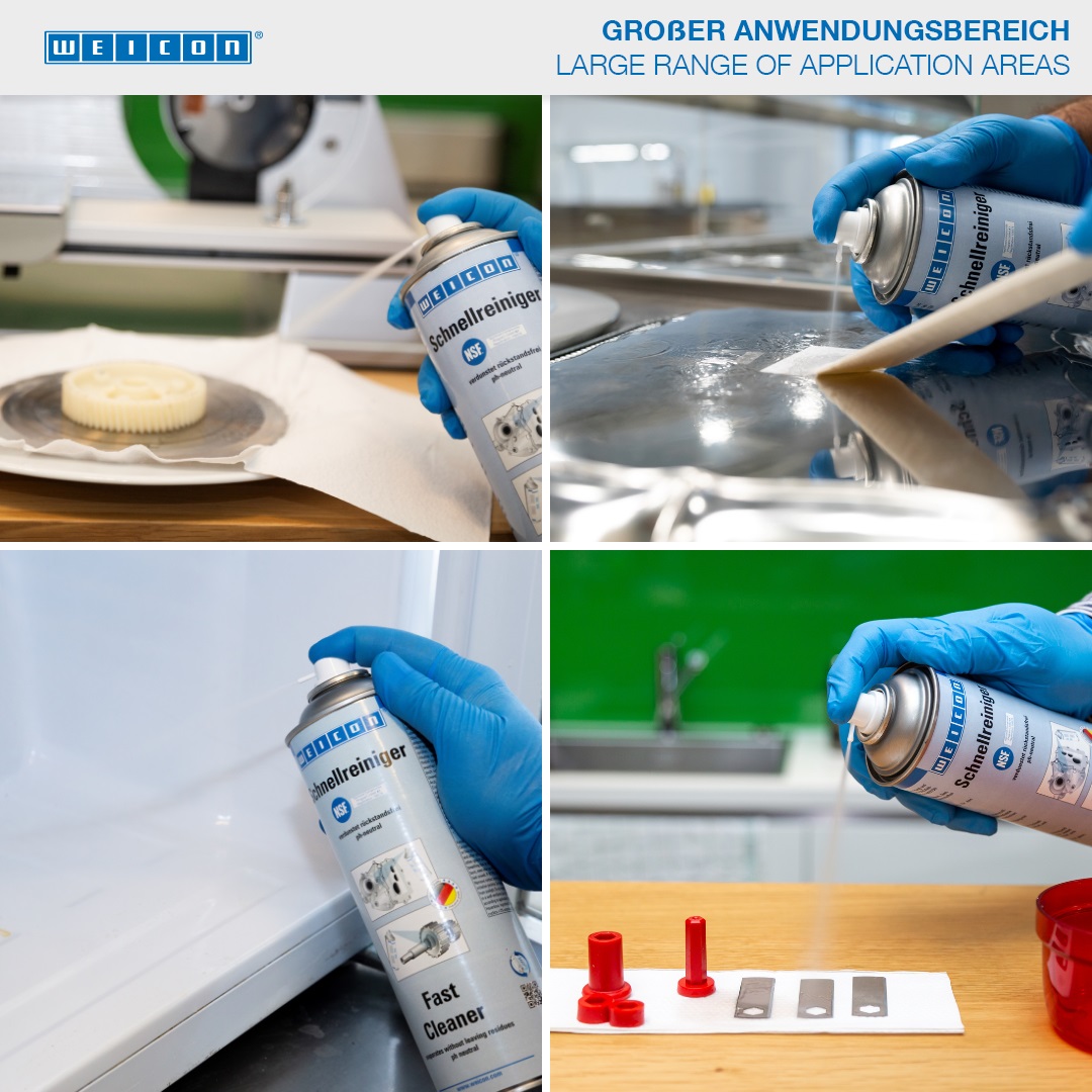 웨이콘 패스트 클리너는 식품 산업에 대한 NSF 등록을 보유하고 있으므로 식품 산업, 식음료 산업, 제약 및 화학 산업에서 유지 보수 작업 범위 내에서 발생하는 오염을 제거하고 경화되지 않은 접착제 잔여물을 제거하기 위한 세척 및 탈지제로 사용할 수 있습니다. 패스트 클리너는 웨이콘 접착제 및 실란트로 접착 또는 밀봉된 표면 또는 웨이콘 메탈 스프레이로 코팅할 표면을 세척하고 탈지하는 데 사용됩니다. 패스트 클리너는 pH 중성이며 재료 호환성이 있으며 금속, 유리, 세라믹, 대부분의 고무 및 플라스틱과 같은 다양한 재료에 사용할 수 있습니다. 특수 포뮬러와 그에 따른 NSF 등록으로 인해 패스트 클리너는 산업 안전 및 건강 보호 개선에 기여할 수 있습니다.