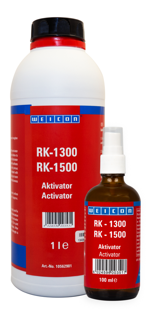 대형 용기(800g 캔, 330g 카트리지, 6kg 캔)에 MMA 접착제 RK-1300 및 RK-1500을 공정에 안전하게 도포할 수 있습니다. 활성제는 접착제를 경화시키며 다음과 같은 용기 크기로 제공됩니다: 100ml 펌프 스프레이 또는 1ℓ 병.