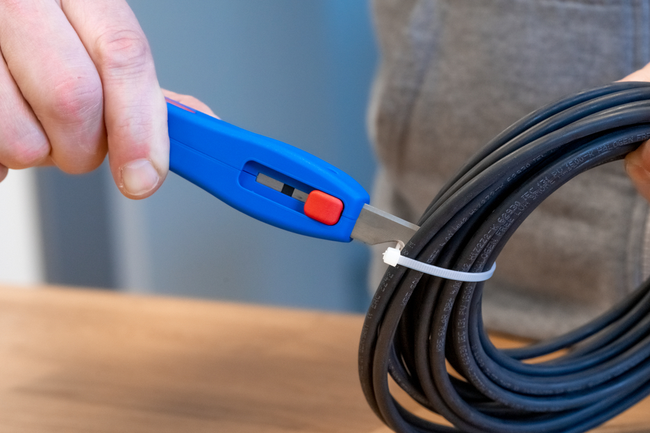 케이블 스트립퍼 S 4-28을 사용하면 직경 4~28mm의 모든 일반 원형 케이블을 정확하고 빠르고 안전하게 피복할 수 있습니다. 하우징에 있는 조정 나사를 통해 칼의 절단 깊이를 무한대로 가변 범위로 설정할 수 있습니다. 이렇게 하면 내부 도체가 손상되는 것을 방지할 수 있습니다. 커팅 칼날은 하우징에 통합되어 있고 자동 회전하므로 원형 절단에서 세로 절단까지 자동으로 조정할 수 있습니다. 또한 후크 블레이드가 S 4-28에 통합되어 있어 하우징 안으로 집어넣을 수 있습니다. 칼날은 두 위치에서 모두 잠글 수 있습니다. 따라서 고정된 칼날로 인한 부상 위험을 크게 줄일 수 있습니다;