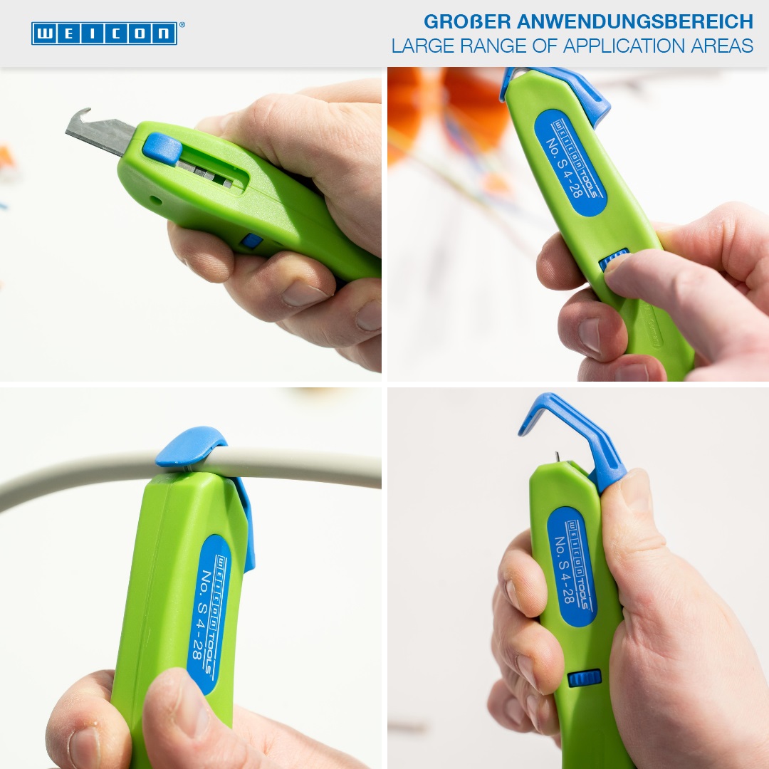 지속 가능한 스트리핑 도구 I 개폐식 후크 블레이드 포함 I 작업 범위 4 - 28 mm Ø
