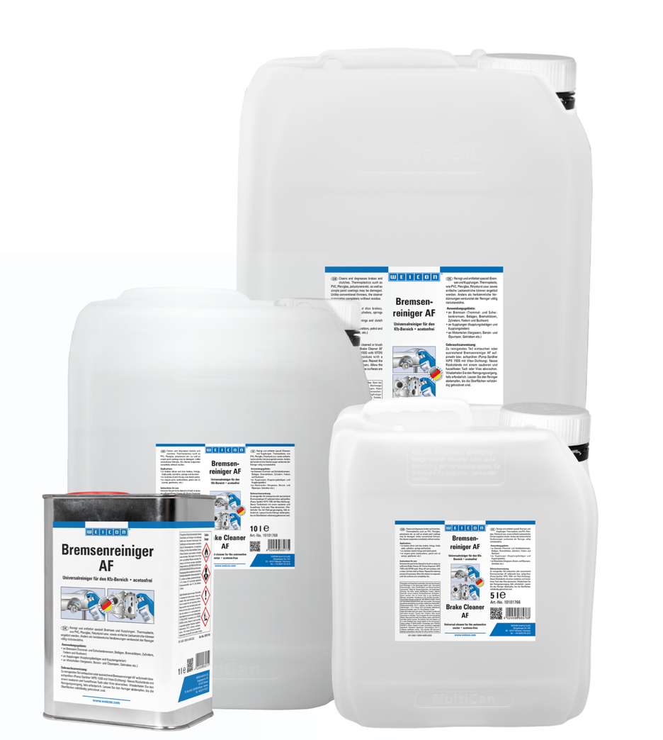 웨이콘 브레이크 클리너 AF는 아세톤이 함유되지 않은 자동차 분야용 범용 클리너입니다. 액체 제제는 잔여물 없이 완전히 세척, 탈지 및 증발합니다. 브레이크 클리너 AF는 금속, 유리, 고무 소재, 분말 코팅 표면 및 다양한 플라스틱을 빠르고 쉽게 탈지 및 세척하고 오일 및 그리스 오염과 잔여물을 확실하게 제거합니다; 이 클리너는 브레이크(드럼 및 디스크 브레이크, 라이닝, 브레이크 패드, 실린더, 스프링 및 부시), 클러치(클러치 라이닝 및 부품) 또는 엔진 부품(카뷰레터, 가솔린 및 오일 펌프, 기어박스 등)에 사용할 수 있습니다. 그러나 플라스틱 프로파일, 씰 또는 페인트 표면 청소에도 적합하며 산업 및 무역의 여러 분야에서 사용할 수 있습니다.
